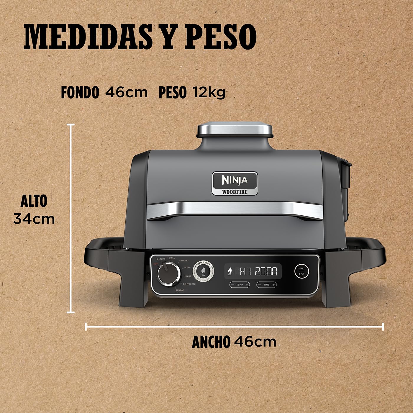 Funciones: 7 en 1 (Grill, Smoke, Air Fry, Roast, Bake, Reheat, Dehydrate)